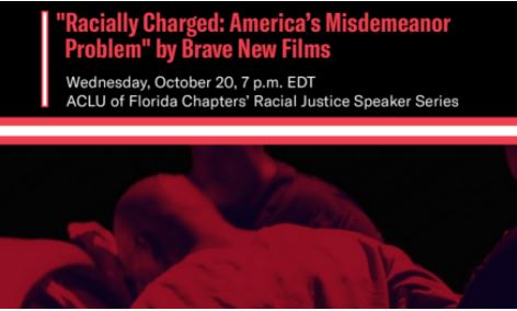 On Wednesday, October 20, join the ACLU for its next virtual event in its racial justice series hosted by the Palm Beach Chapter of the ACLU of Florida, a screening and panel discussion of “Racially Charged: America’s Misdemeanor Problem.”